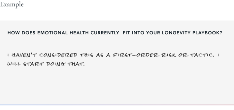 Consider how your emotional health currently fits into your longevity playbook. Then, answer the following questions under Step 1: Assess on the worksheet.